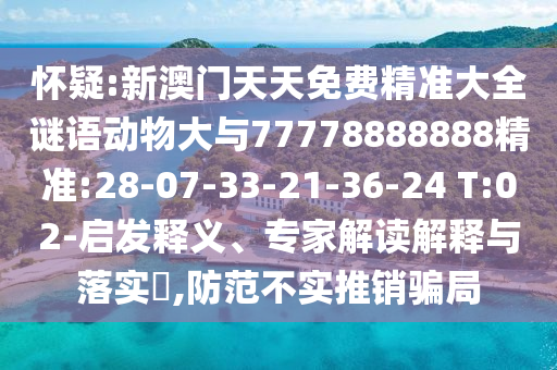 懷疑:新澳門天天免費(fèi)精準(zhǔn)大全謎語(yǔ)動(dòng)物大與77778888888精準(zhǔn):28-07-33-21-36-24 T:02-啟發(fā)釋義、專家解讀解釋與落實(shí)?,防范不實(shí)推銷騙局