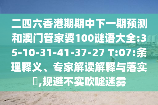 二四六香港期期中下一期預(yù)測(cè)和澳門管家婆100謎語(yǔ)大全:35-10-31-41-37-27 T:07:條理釋義、專家解讀解釋與落實(shí)?,規(guī)避不實(shí)吹噓迷霧
