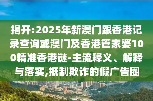 揭開:2025年新澳門跟香港記錄查詢或澳門及香港管家婆100精準(zhǔn)香港謎-主流釋義、解釋與落實,抵制欺詐的假廣告圈