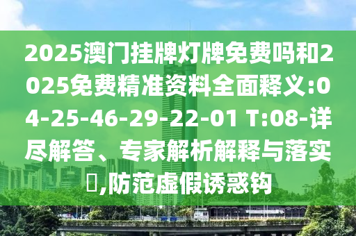 2025澳門掛牌燈牌免費(fèi)嗎和2025免費(fèi)精準(zhǔn)資料全面釋義:04-25-46-29-22-01 T:08-詳盡解答、專家解析解釋與落實(shí)?,防范虛假誘惑鉤