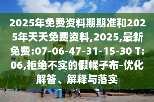 2025年免費(fèi)資料期期準(zhǔn)和2025年天天免費(fèi)資料,2025,最新免費(fèi):07-06-47-31-15-30 T:06,拒絕不實的假幌子布-優(yōu)化解答、解釋與落實