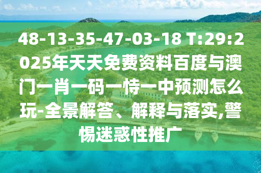 48-13-35-47-03-18 T:29:2025年天天免費(fèi)資料百度與澳門一肖一碼一恃一中預(yù)測(cè)怎么玩-全景解答、解釋與落實(shí),警惕迷惑性推廣