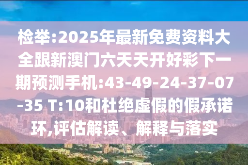 檢舉:2025年最新免費資料大全跟新澳門六天天開好彩下一期預(yù)測手機(jī):43-49-24-37-07-35 T:10和杜絕虛假的假承諾環(huán),評估解讀、解釋與落實