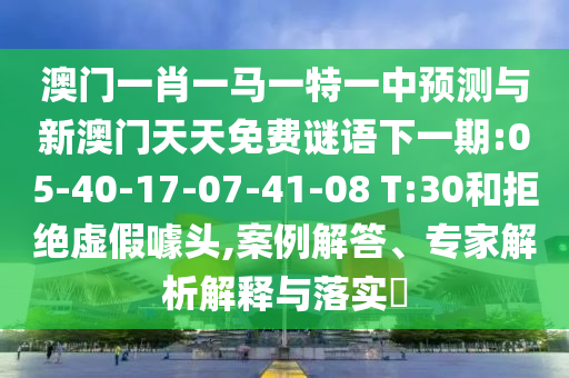 澳門一肖一馬一特一中預(yù)測與新澳門天天免費謎語下一期:05-40-17-07-41-08 T:30和拒絕虛假噱頭,案例解答、專家解析解釋與落實?