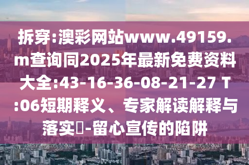 拆穿:澳彩網(wǎng)站www.49159.m查詢同2025年最新免費資料大全:43-16-36-08-21-27 T:06短期釋義、專家解讀解釋與落實?-留心宣傳的陷阱