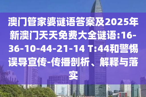 澳門管家婆謎語答案及2025年新澳門天天免費大全謎語:16-36-10-44-21-14 T:44和警惕誤導(dǎo)宣傳-傳播剖析、解釋與落實