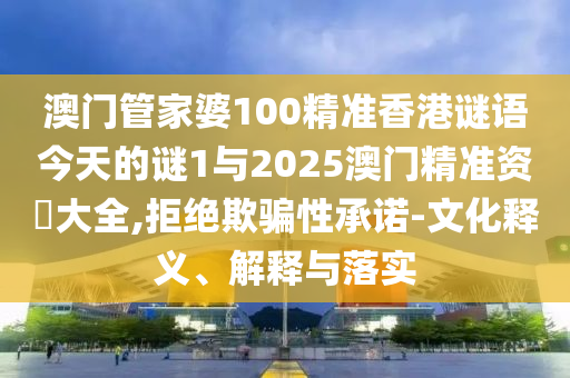 澳門管家婆100精準(zhǔn)香港謎語今天的謎1與2025澳門精準(zhǔn)資枓大全,拒絕欺騙性承諾-文化釋義、解釋與落實