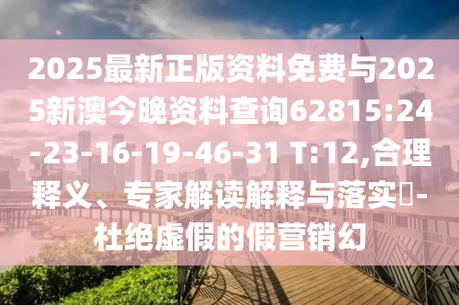 2025最新正版資料免費(fèi)與2025新澳今晚資料查詢62815:24-23-16-19-46-31 T:12,合理釋義、專家解讀解釋與落實(shí)?-杜絕虛假的假營銷幻
