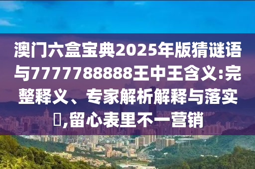 關(guān)于澳門六盒寶典2025年版猜謎語(yǔ)與7777788888王中王含義的完整釋義、專家解析解釋與落實(shí),以及留心表里不一營(yíng)銷和虛假宣傳的提醒