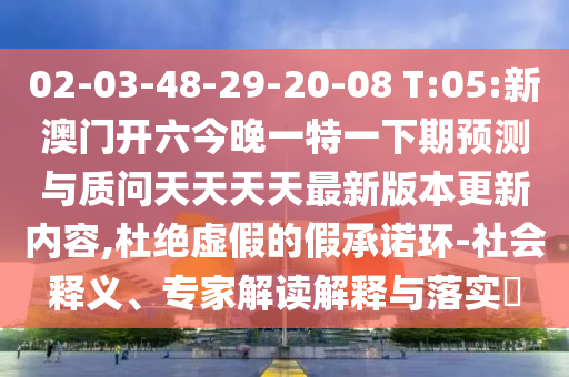 針對您提供的關(guān)鍵詞:“02-03-48-29-20-08 T:05:新澳門開六今晚一特一下期預(yù)測與質(zhì)問天天天天最新版本更新內(nèi)容的杜絕虛假的假承諾環(huán)-社會(huì)釋義、專家解讀解釋與落實(shí)”,我們可以從以下幾個(gè)方面進(jìn)行全面釋義、解釋與落實(shí),并特別提醒公眾警惕虛假宣傳。