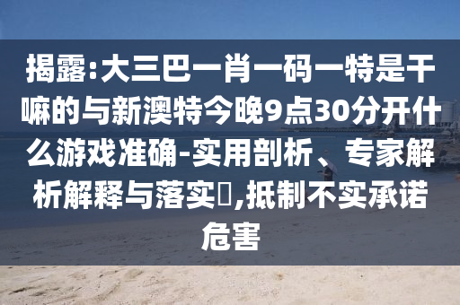 揭露:大三巴一肖一碼一特是干嘛的與新澳特今晚9點30分開什么游戲準確-實用剖析、專家解析解釋與落實?,抵制不實承諾危害