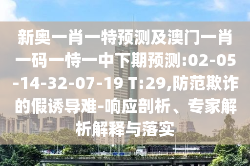 新奧一肖一特預(yù)測(cè)及澳門(mén)一肖一碼一恃一中下期預(yù)測(cè):02-05-14-32-07-19 T:29,防范欺詐的假誘導(dǎo)難-響應(yīng)剖析、專家解析解釋與落實(shí)