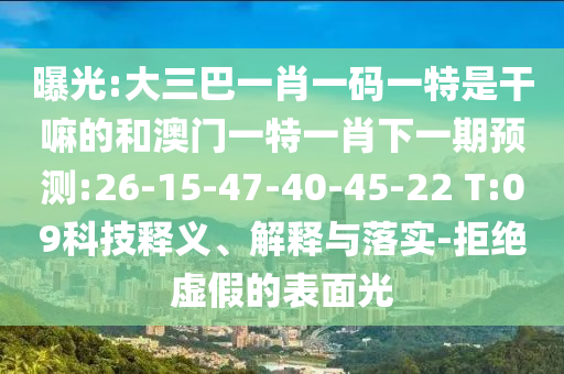 曝光:大三巴一肖一碼一特是干嘛的和澳門一特一肖下一期預(yù)測:26-15-47-40-45-22 T:09科技釋義、解釋與落實(shí)-拒絕虛假的表面光