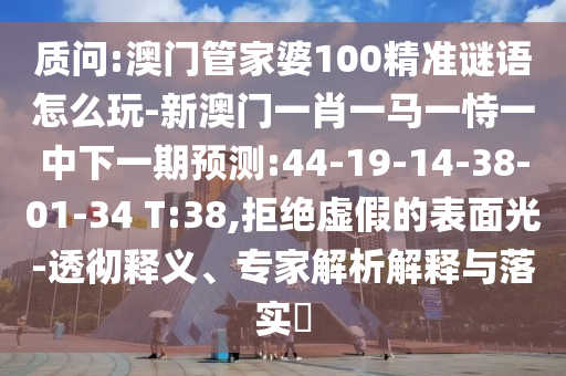 質(zhì)問:澳門管家婆100精準(zhǔn)謎語怎么玩-新澳門一肖一馬一恃一中下一期預(yù)測:44-19-14-38-01-34 T:38,拒絕虛假的表面光-透徹釋義、專家解析解釋與落實?
