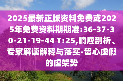 2025最新正版資料免費或2025年免費資料期期準(zhǔn):36-37-30-21-19-44 T:25,響應(yīng)剖析、專家解讀解釋與落實-留心虛假的虛架勢