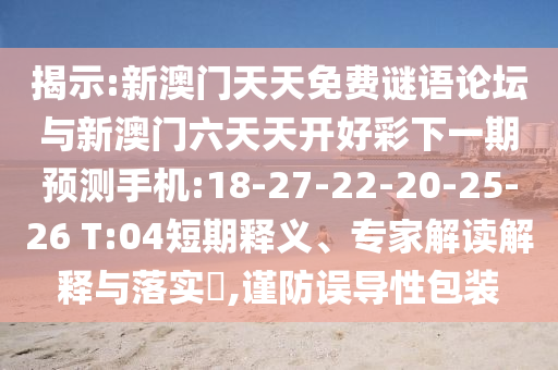揭示:新澳門(mén)天天免費(fèi)謎語(yǔ)論壇與新澳門(mén)六天天開(kāi)好彩下一期預(yù)測(cè)手機(jī):18-27-22-20-25-26 T:04短期釋義、專(zhuān)家解讀解釋與落實(shí)?,謹(jǐn)防誤導(dǎo)性包裝