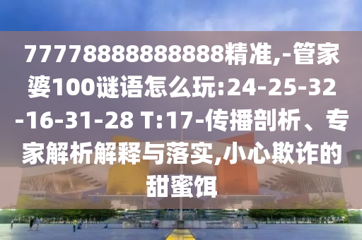 77778888888888精準(zhǔn),-管家婆100謎語怎么玩:24-25-32-16-31-28 T:17-傳播剖析、專家解析解釋與落實(shí),小心欺詐的甜蜜餌