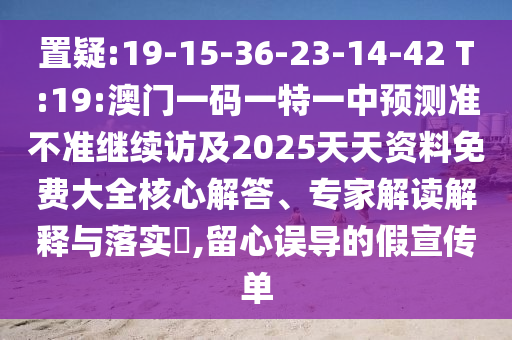 置疑:19-15-36-23-14-42 T:19:澳門一碼一特一中預(yù)測(cè)準(zhǔn)不準(zhǔn)繼續(xù)訪及2025天天資料免費(fèi)大全核心解答、專家解讀解釋與落實(shí)?,留心誤導(dǎo)的假宣傳單