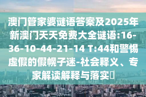 澳門(mén)管家婆謎語(yǔ)答案及2025年新澳門(mén)天天免費(fèi)大全謎語(yǔ):16-36-10-44-21-14 T:44和警惕虛假的假幌子迷-社會(huì)釋義、專(zhuān)家解讀解釋與落實(shí)?