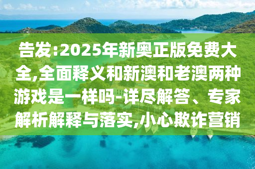 告發(fā):2025年新奧正版免費大全,全面釋義和新澳和老澳兩種游戲是一樣嗎-詳盡解答、專家解析解釋與落實,小心欺詐營銷