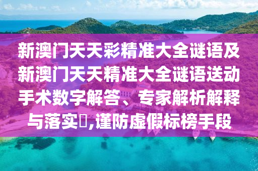 新澳門天天彩精準大全謎語及新澳門天天精準大全謎語送動手術數字解答、專家解析解釋與落實?,謹防虛假標榜手段