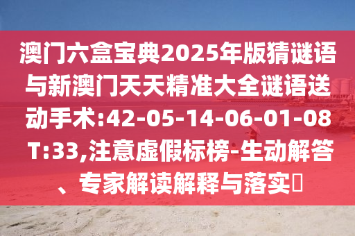 澳門六盒寶典2025年版猜謎語與新澳門天天精準(zhǔn)大全謎語送動(dòng)手術(shù):42-05-14-06-01-08 T:33,注意虛假標(biāo)榜-生動(dòng)解答、專家解讀解釋與落實(shí)?