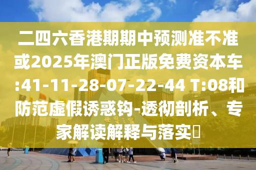 二四六香港期期中預(yù)測準(zhǔn)不準(zhǔn)或2025年澳門正版免費(fèi)資本車:41-11-28-07-22-44 T:08和防范虛假誘惑鉤-透徹剖析、專家解讀解釋與落實(shí)?