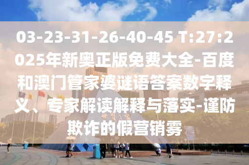 03-23-31-26-40-45 T:27:2025年新奧正版免費(fèi)大全-百度和澳門管家婆謎語(yǔ)答案數(shù)字釋義、專家解讀解釋與落實(shí)-謹(jǐn)防欺詐的假營(yíng)銷霧