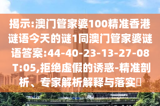 澳門(mén)管家婆100精準(zhǔn)香港謎語(yǔ)今天的謎1同澳門(mén)管家婆謎語(yǔ)答案:44-40-23-13-27-08 T:05的精準(zhǔn)剖析、專(zhuān)家解析解釋與落實(shí)?