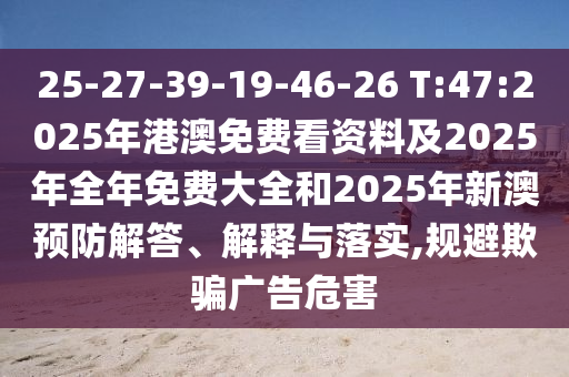 25-27-39-19-46-26 T:47:2025年港澳免費看資料及2025年全年免費大全和2025年新澳預(yù)防解答、解釋與落實,規(guī)避欺騙廣告危害