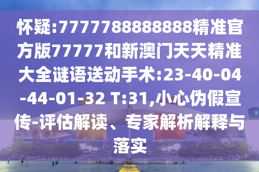 懷疑:7777788888888精準官方版77777和新澳門天天精準大全謎語送動手術:23-40-04-44-01-32 T:31,小心偽假宣傳-評估解讀、專家解析解釋與落實