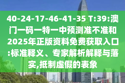 40-24-17-46-41-35 T:39:澳門一碼一特一中預測準不準和2025年正版資料免費獲取入口:標準釋義、專家解析解釋與落實,抵制虛假的表象
