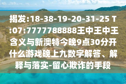 18-38-19-20-31-25 T:07:7777788888 王中王中王含義”與游戲開獎的解讀、解釋與落實(shí),以及警惕虛假宣傳和欺詐手段