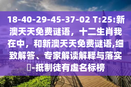 18-40-29-45-37-02 T:25:新澳天天免費(fèi)謎語(yǔ),十二生肖我在中,和新澳天天免費(fèi)謎語(yǔ):細(xì)致解答、專(zhuān)家解讀解釋與落實(shí)?