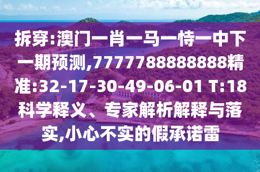拆穿:澳門一肖一馬一恃一中下一期預(yù)測(cè),7777788888888精準(zhǔn):32-17-30-49-06-01 T:18科學(xué)釋義、專家解析解釋與落實(shí),小心不實(shí)的假承諾雷