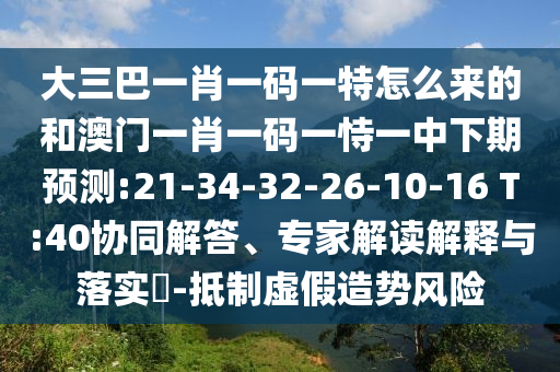 大三巴一肖一碼一特怎么來(lái)的和澳門一肖一碼一恃一中下期預(yù)測(cè):21-34-32-26-10-16 T:40協(xié)同解答、專家解讀解釋與落實(shí)?-抵制虛假造勢(shì)風(fēng)險(xiǎn)