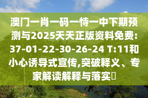 澳門一肖一碼一恃一中下期預(yù)測與2025天天正版資料免費:37-01-22-30-26-24 T:11和小心誘導(dǎo)式宣傳,突破釋義、專家解讀解釋與落實?
