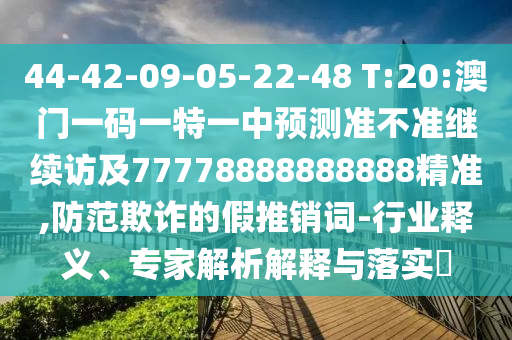 44-42-09-05-22-48 T:20:澳門一碼一特一中預(yù)測準不準繼續(xù)訪及77778888888888精準的行業(yè)釋義、專家解析解釋與落實?