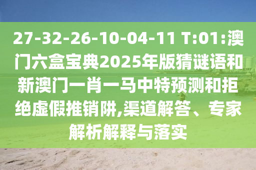 27-32-26-10-04-11 T:01:澳門六盒寶典2025年版猜謎語和新澳門一肖一馬中特預(yù)測:渠道解答、專家解析解釋與落實