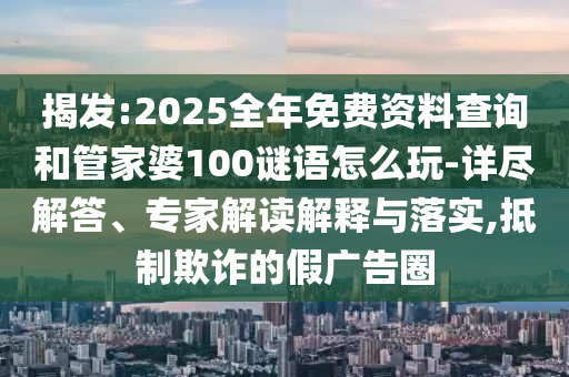 2025全年免費資料查詢和管家婆100謎語怎么玩,抵制欺詐的假廣告圈”的詳盡解答、專家解讀解釋與落實