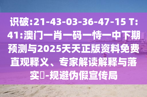 21-43-03-36-47-15 T:41:澳門一肖一碼一恃一中下期預(yù)測與2025天天正版資料免費(fèi):直觀釋義、專家解讀解釋與落實?