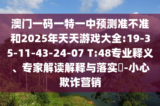 澳門一碼一特一中預(yù)測準(zhǔn)不準(zhǔn)和2025年天天游戲大全:19-35-11-43-24-07 T:48專業(yè)釋義、專家解讀解釋與落實(shí)?-小心欺詐營銷