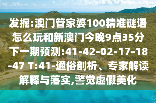 發(fā)掘:澳門管家婆100精準(zhǔn)謎語(yǔ)怎么玩和新澳門今晚9點(diǎn)35分下一期預(yù)測(cè):41-42-02-17-18-47 T:41-通俗剖析、專家解讀解釋與落實(shí),警覺虛假美化