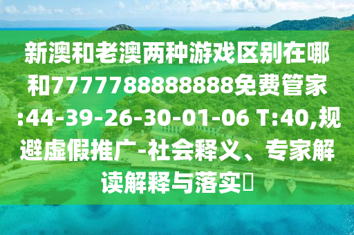 關(guān)于揭露新澳和老澳兩種游戲的區(qū)別以及關(guān)于“7777788888888免費管家:44-39-26-30-01-06 T:40”的信息,我們需要進行全面的釋義、解釋與落實,并提醒公眾警惕虛假宣傳。