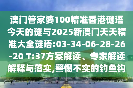 澳門(mén)管家婆100精準(zhǔn)香港謎語(yǔ)今天的謎與2025新澳門(mén)天天精準(zhǔn)大全謎語(yǔ):03-34-06-28-26-20 T:37方案解讀、專家解讀解釋與落實(shí),警惕不實(shí)的釣魚(yú)鉤