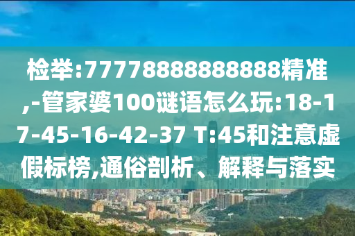 檢舉:77778888888888精準(zhǔn),-管家婆100謎語怎么玩:18-17-45-16-42-37 T:45和注意虛假標(biāo)榜,通俗剖析、解釋與落實
