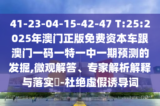41-23-04-15-42-47 T:25:2025年澳門(mén)正版免費(fèi)資本車跟澳門(mén)一碼一特一中一期預(yù)測(cè)的發(fā)掘,微觀解答、專家解析解釋與落實(shí)?-杜絕虛假誘導(dǎo)詞