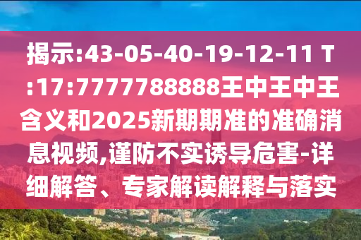 揭示:43-05-40-19-12-11 T:17:7777788888王中王中王含義和2025新期期準(zhǔn)的準(zhǔn)確消息視頻,謹(jǐn)防不實(shí)誘導(dǎo)危害-詳細(xì)解答、專家解讀解釋與落實(shí)