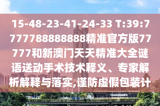 15-48-23-41-24-33 T:39:7777788888888精準(zhǔn)官方版77777和新澳門天天精準(zhǔn)大全謎語送動手術(shù)技術(shù)釋義、專家解析解釋與落實,謹(jǐn)防虛假包裝計