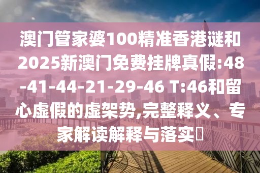 澳門管家婆100精準(zhǔn)香港謎和2025新澳門免費(fèi)掛牌真假:48-41-44-21-29-46 T:46和留心虛假的虛架勢,完整釋義、專家解讀解釋與落實(shí)?